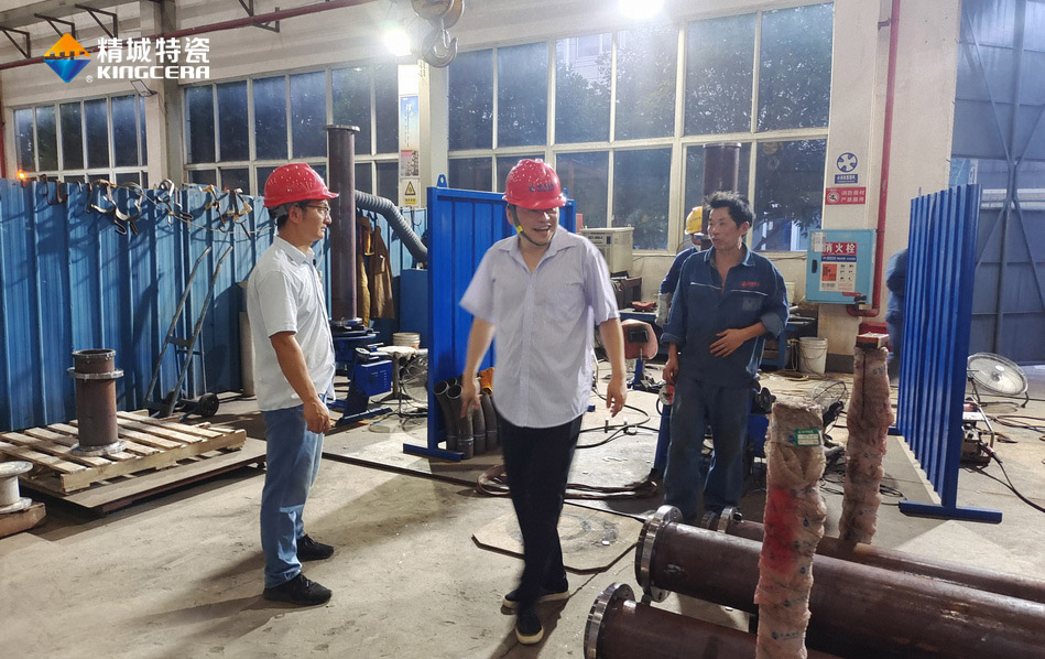 首先,精城領導盡可能的調度生產資源,將生產力朝著該內蒙古客戶的項目傾斜,加快生產效率。而且當這個消息傳出之時,精城員工積極響應,能抽出時間的員工自發進入車間幫忙打磨、包裝陶瓷管道,更有員工留下值夜班,全力以赴幫客戶排憂解難。但即便在這種緊急時刻,精城的領導也依然親臨現場多次強調:“必須在保證質量的基礎上提升效率,不能為了交貨犧牲品質。”